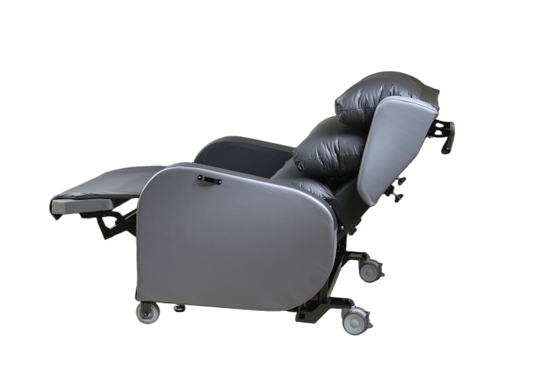 Integrated pressure-relieving materials in the seat and backrest help maintain skin integrity and reduce the risk of pressure injuries during extended use. Optional accessories such as lateral supports, footrests, and headrests allow for customised comfort and adaptability to individual needs.